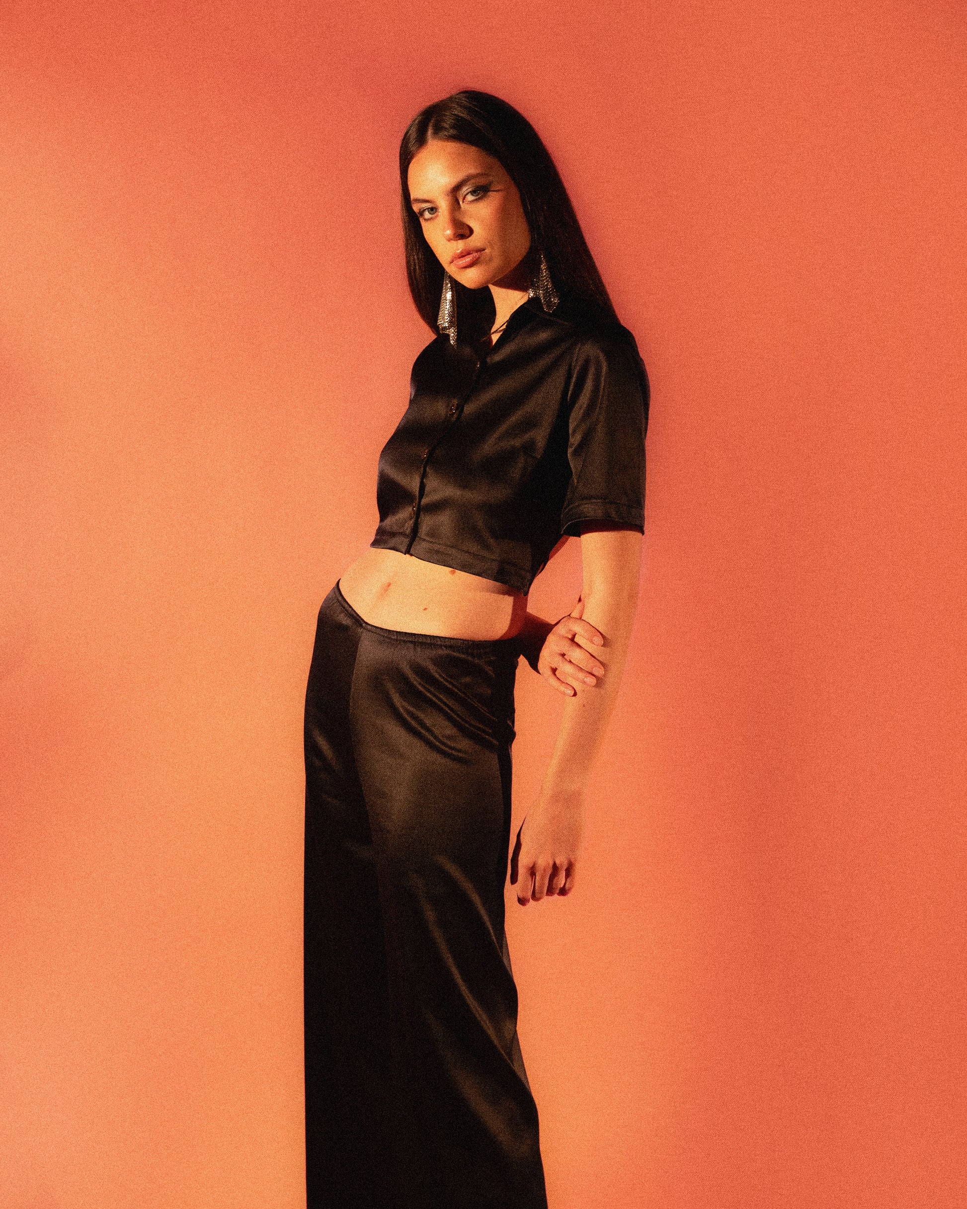 Effortless, elegant, and fluid. The Gala Wide-Leg Pants are crafted from a soft, high-shine satin that drapes beautifully and elongates the silhouette. Designed with a comfortable waist and a relaxed leg, they bring modern sophistication whether styled with a simple tank, the matching camp shirt, or statement pieces.